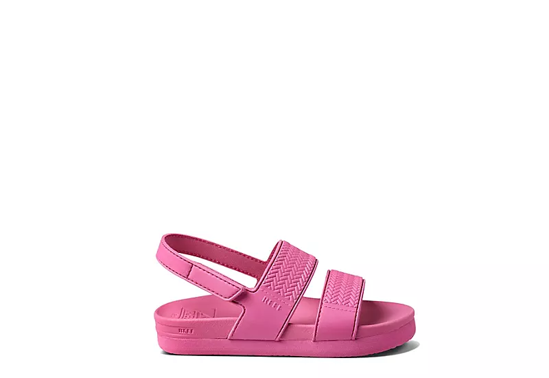 Say hello to a summer favorite in the REEF Lil Water Vista infant girls’ sandal. With a water-friendly synthetic upper featuring a textured design for a great look, this velcro backstrap sandal is super soft and bouncy for all-day comfort. The lightweight EVA footbed is dual-density, while the outsole offers durability through all kinds of terrain and elements.